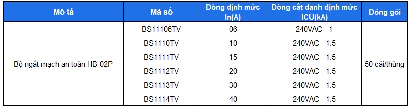 Cầu dao an toàn Panasonic 1 pha HB-02P